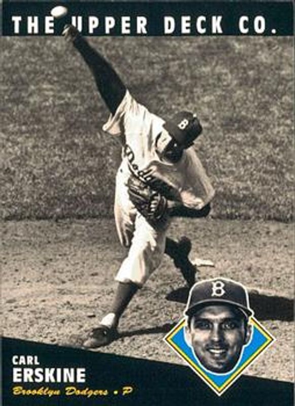 The Carl Erskine 1994 Upper Deck All-Time Heroes #187 Base card is 1 of 2 Carl Erskine's card variations in the 1994 Upper Deck All-Time Heroes set being tracked by Sports Card Investor, including 125th Anniversary.