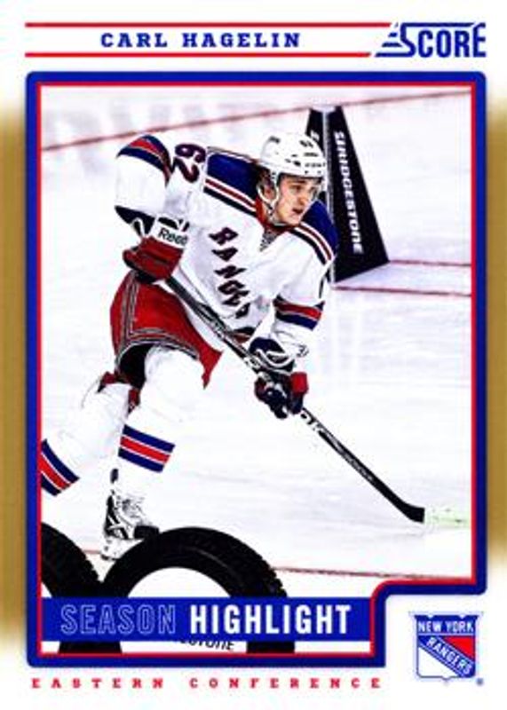 The Carl Hagelin 2012 Score #11 Gold Rush card is 1 of 9 Carl Hagelin's card variations in the 2012 Score set being tracked by Sports Card Investor, including #11 Base, #317 Base, #317 Black Ice, #11 Black Ice, and #317 Gold Rush.