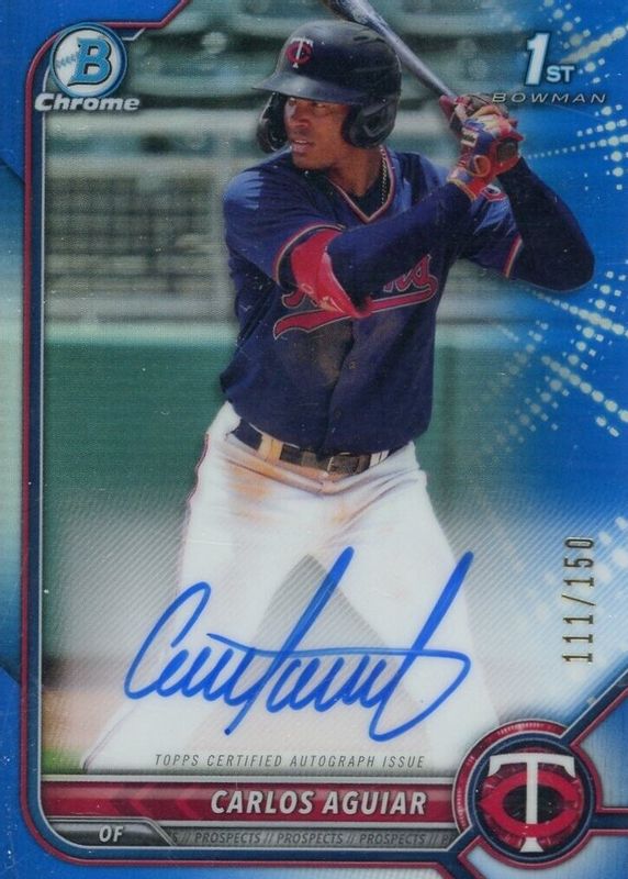 2022 Bowman Chrome Carlos Aguiar Bowman 1st TRUE BLUE AUTO #111/150 TWINS
