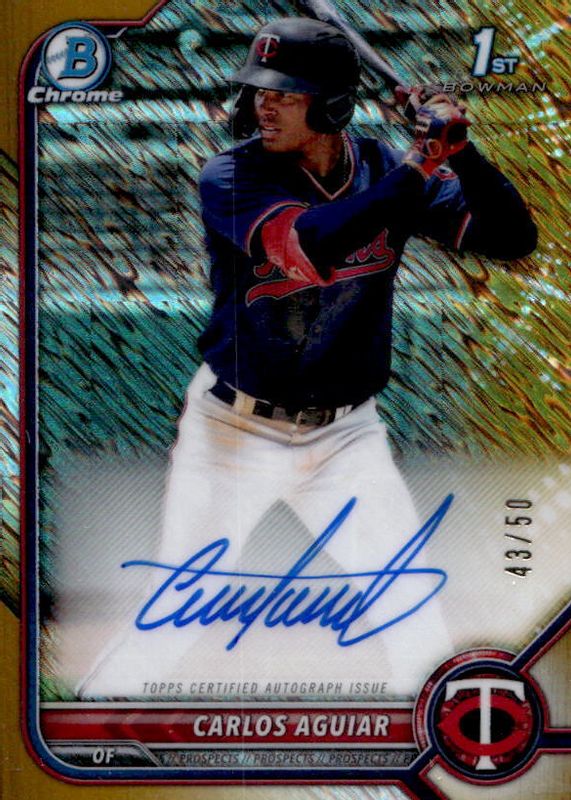 2022 Bowman Chrome 1st Carlos Aguiar Gold Shimmer Refractor AUTO 30/50 Twins