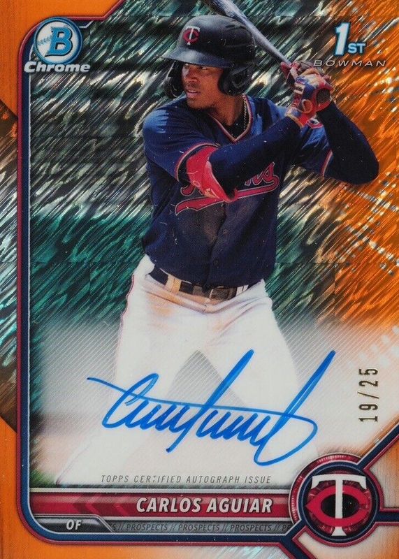 Carlos Aguiar 2022 Bowman #CPA-CA Chrome Prospect Auto - Orange Shimmer Refractor /25 (1st) RAW Price Guide