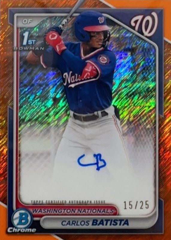 Carlos Batista 2024 Bowman Chrome #CPA-CB Prospect Auto - Orange Shimmer Refractor /25 (1st) RAW Price Guide