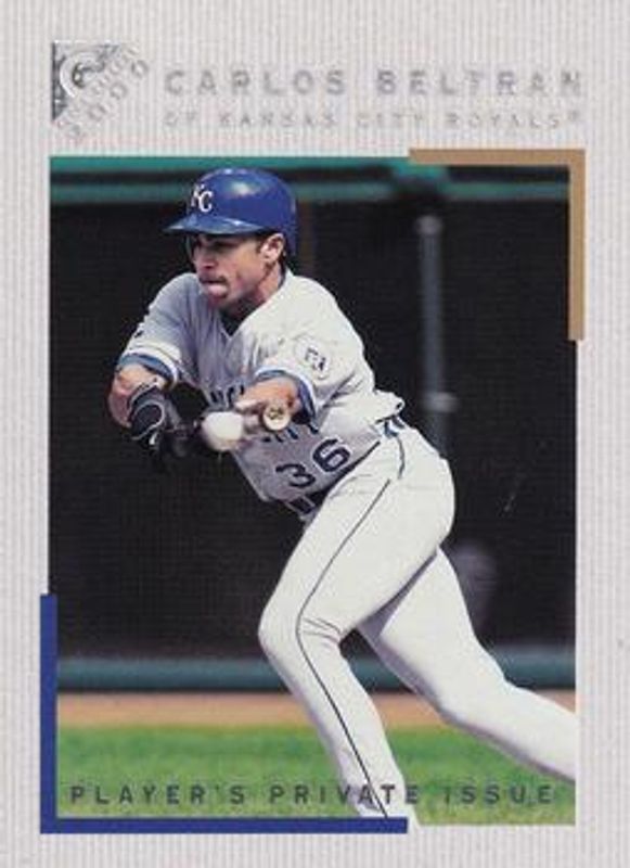 The Carlos Beltran 2000 Topps Gallery #7 Player's Private Issue /250 card is 1 of 6 Carlos Beltran's card variations in the 2000 Topps Gallery set being tracked by Sports Card Investor, including Base, Press Plates Black /1, Press Plates Cyan /1, Press Plates Magenta /1, and Press Plates Yellow /1.