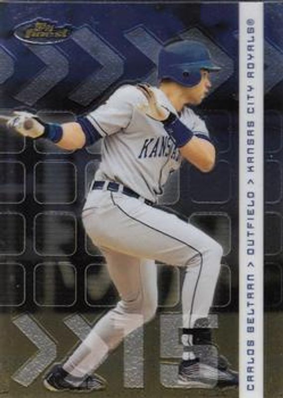 The Carlos Beltran 2002 Topps Finest #22 Base card is 1 of 3 Carlos Beltran's card variations in the 2002 Topps Finest set being tracked by Sports Card Investor, including Refractor /499, and X-Fractor /299.