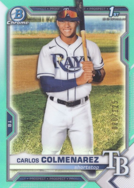 The Carlos Colmenarez 2021 Bowman Chrome #BCP-238 Prospects - Aqua Refractor /125 (1st) card in Raw condition has not changed in price in the last 30 days and was last sold for $23.50 .