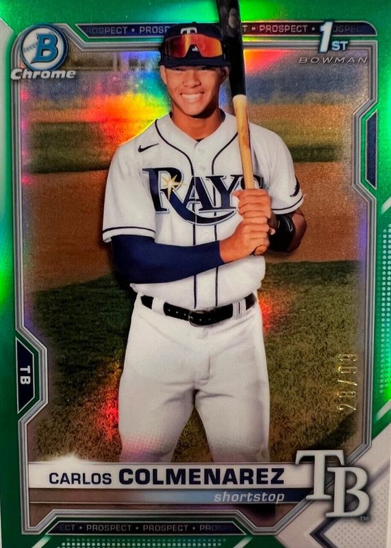 The Carlos Colmenarez 2021 Bowman Chrome #BCP-238 Prospects - Green Refractor /99 (1st) card in Raw condition has not changed in price in the last 30 days and was last sold for $3.00 .
