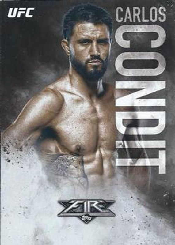 The Carlos Condit 2017 Topps Fire UFC #48 Base card is 1 of 4 Carlos Condit's card variations in the 2017 Topps Fire UFC set being tracked by Sports Card Investor, including Red Hot /142, Blue Flame /25, and Inferno /1.