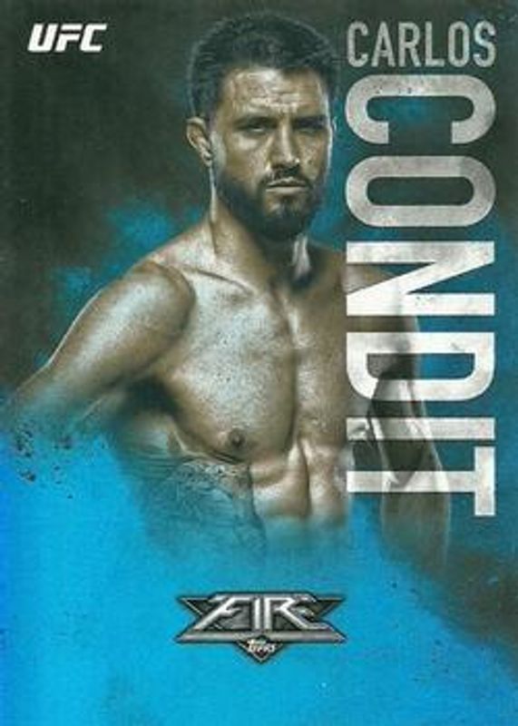 The Carlos Condit 2017 Topps Fire UFC #48 Blue Flame /25 card is 1 of 4 Carlos Condit's card variations in the 2017 Topps Fire UFC set being tracked by Sports Card Investor, including Base, Red Hot /142, and Inferno /1.