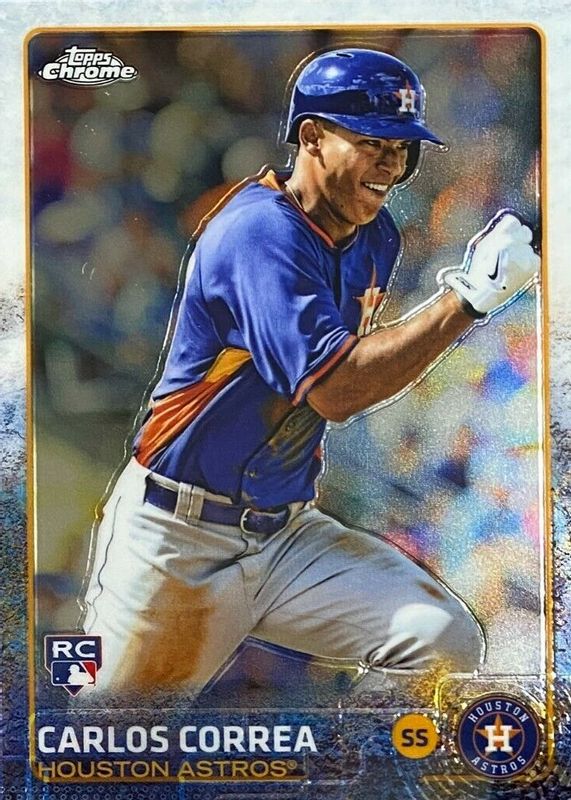 The Carlos Correa 2015 Topps Chrome #205 Base Rookie card in Raw condition has moved down -$5.00 (-21.7%) in the last 30 days and was last sold for $18.00 .