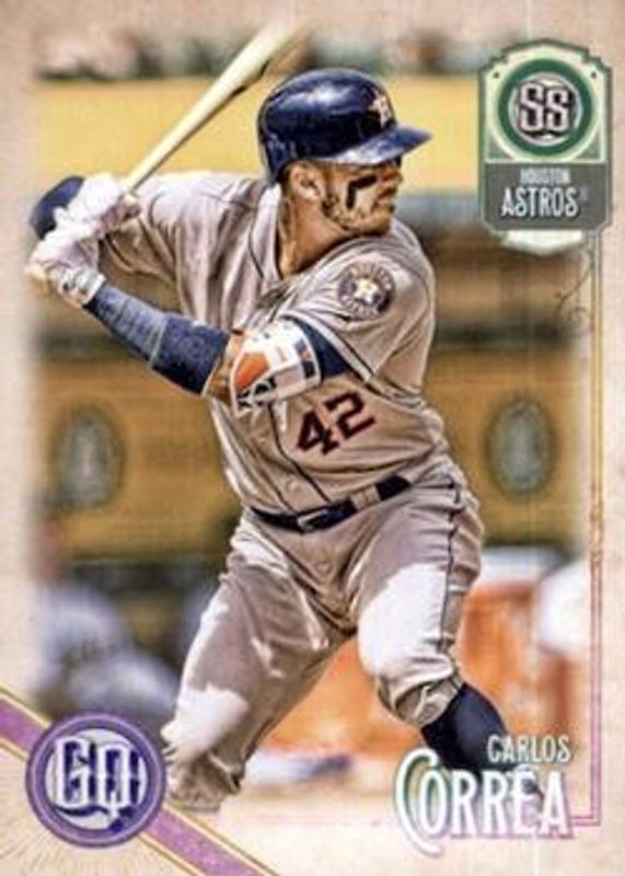 The Carlos Correa 2018 Topps Gypsy Queen #25b Base card is 1 of 44 Carlos Correa's card variations in the 2018 Topps Gypsy Queen set being tracked by Sports Card Investor, including #25c Base, #25 Base, #25 Bazooka Back, #25 GQ Logo Swap, and #25b GQ Logo Swap.