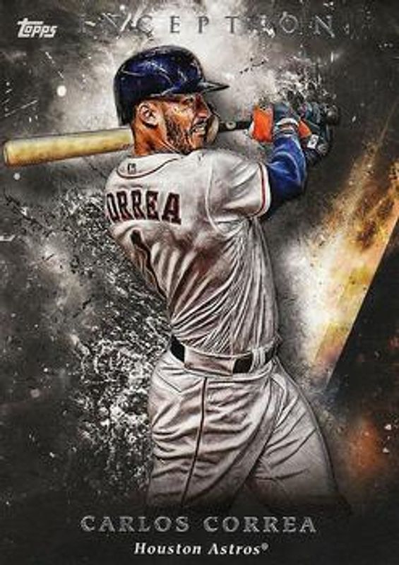 The Carlos Correa 2018 Topps Inception #45 Base card is 1 of 26 Carlos Correa's card variations in the 2018 Topps Inception set being tracked by Sports Card Investor, including Green, Purple /150, Magenta /99, Red /75, and Orange /50.