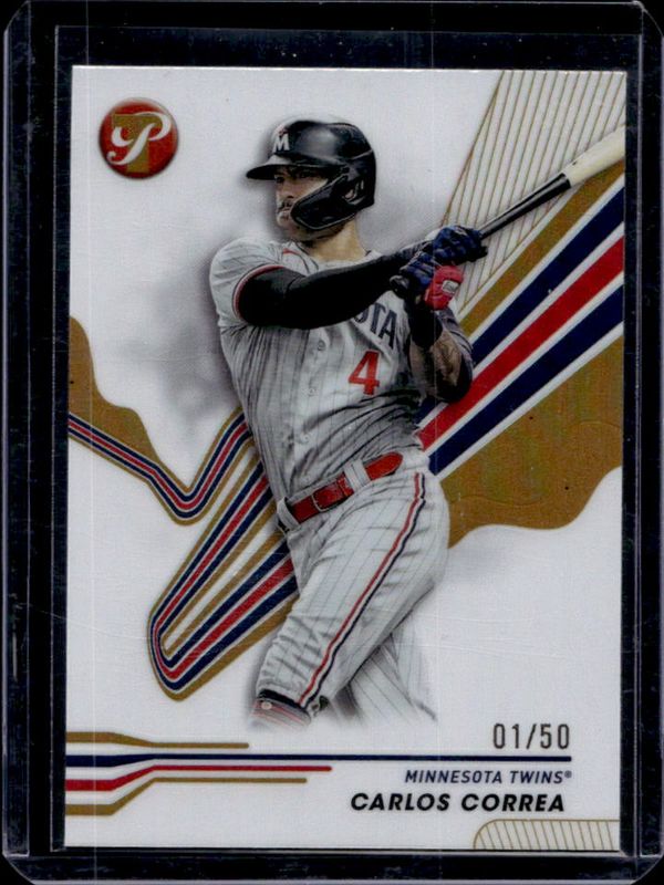 The Carlos Correa 2024 Topps Pristine #146 Gold Refractor /50 card is 1 of 24 Carlos Correa's card variations in the 2024 Topps Pristine set being tracked by Sports Card Investor, including Base, Pristine Refractor, Refractor, Green Refractor /150, and Pristine Purple Refractor /99.
