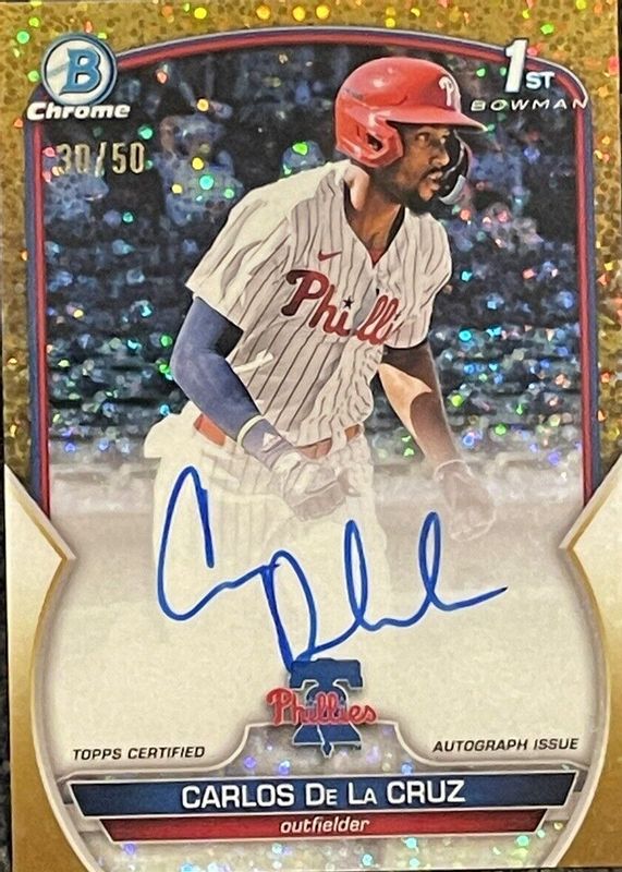 2023 Bowman Chrome Carlos De La Cruz Auto Gold Mini Diamond /50 1st Phillies
