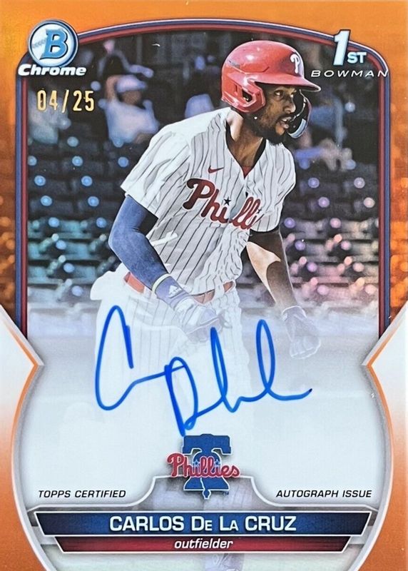 2023 Bowman Chrome Carlos De La Cruz 1st Bowman Orange Auto #25/25 (Phillies)