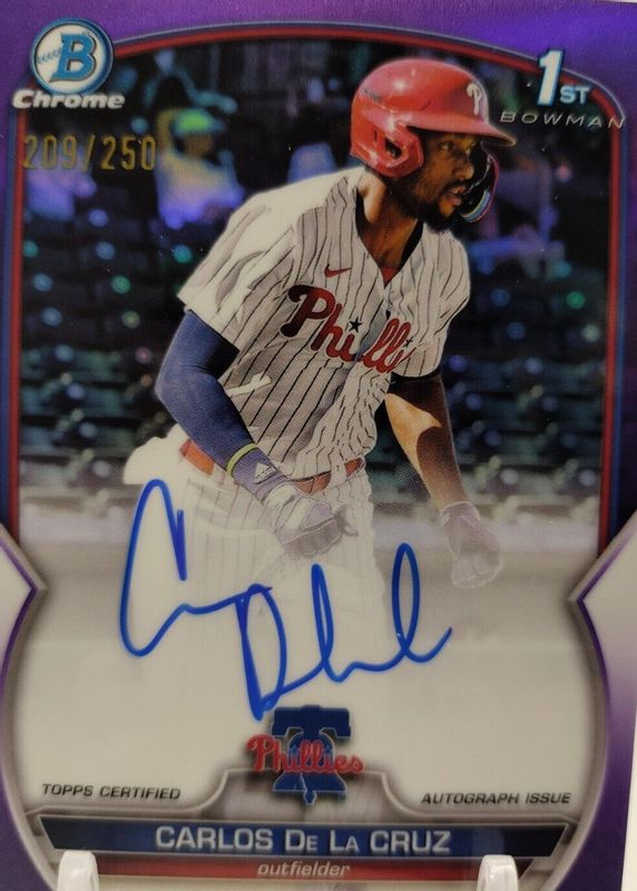 2023 Bowman Chrome Carlos De La Cruz 1st Auto Purple Refractor 002/250 BJGZ