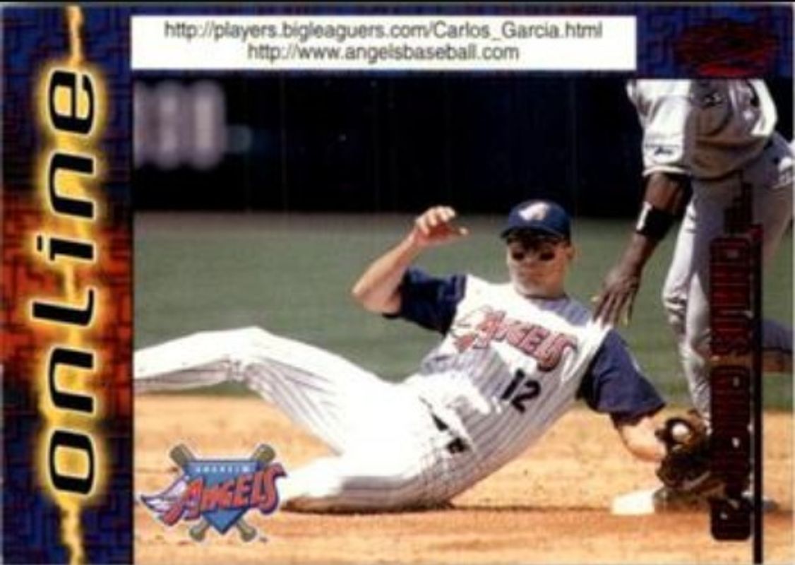 The Carlos Garcia 1998 Pacific Online #9 Red card is 1 of 4 Carlos Garcia's card variations in the 1998 Pacific Online set being tracked by Sports Card Investor, including Base, Base Winners, and Web Cards.
