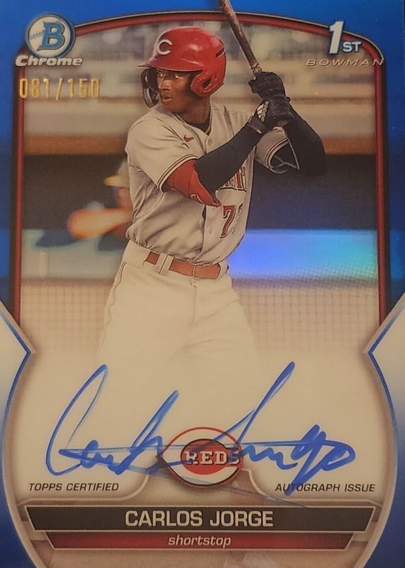 2023 Bowman Chrome Carlos Jorge 1st Bowman True Blue Refractor Auto #/150 Reds