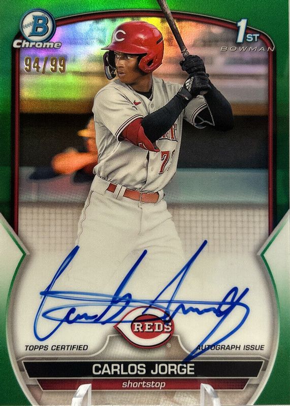 Carlos Jorge 2023 Bowman Chrome 1st Green Refractor Auto /99 #CPA-CJ Reds