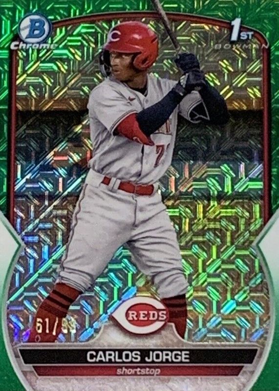 Auctions Ending Soon for Carlos Jorge 2023 Bowman #BCP-120 Chrome Prospects - Green Shimmer Refractor /99 (1st) RAW