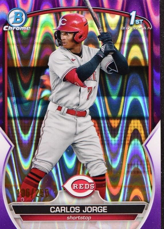 CARLOS JORGE 2023 Bowman Chrome #BCP-120 Purple RayWave Refractor #/250 - Reds