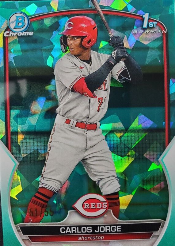 2023 Bowman Sapphire Carlos Jorge 1st Bowman Aqua #/55 Cincinnati Reds