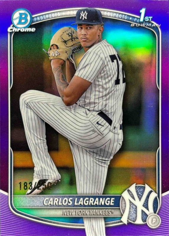 Carlos Lagrange 2025 Bowman Chrome #BCP-202 Orange Refractor 1st RC /25 Yankees