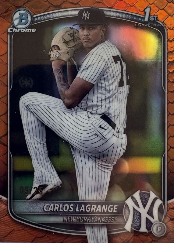 Carlos Lagrange 2025 Bowman Chrome #BCP-202 Prospects - Reptilian Orange Refractor /25 (1st) RAW Price Guide