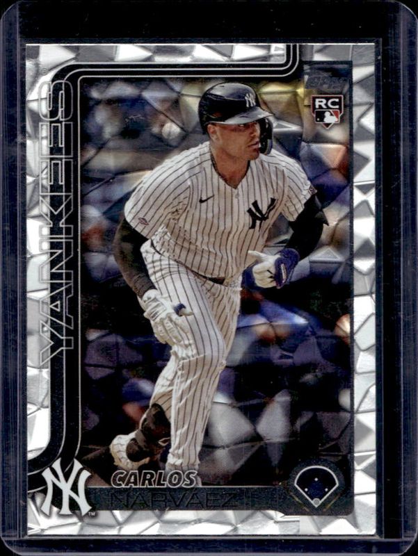 The Carlos Narvaez 2025 Topps #115 Diamante Foil Rookie card is 1 of 70 Carlos Narvaez's card variations in the 2025 Topps set being tracked by Sports Card Investor, including Base, Aqua Holo Foil, Holo Foil, Pink Diamante Foil, and Pink Holo Foil.