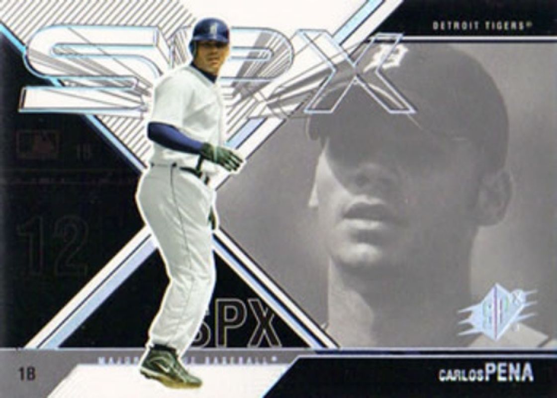 The Carlos Pena 2003 SPx #45 Base /999 card is 1 of 2 Carlos Pena's card variations in the 2003 SPx set being tracked by Sports Card Investor, including Spectrum /25.