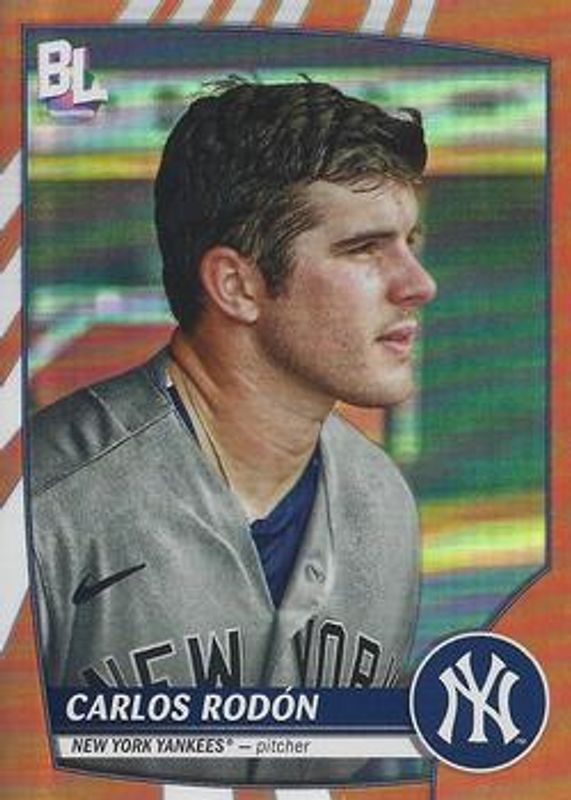 The Carlos Rodon 2023 Topps Big League #248 Electric Orange card is 1 of 6 Carlos Rodon's card variations in the 2023 Topps Big League set being tracked by Sports Card Investor, including Base, Red Foil, Black Foil /25, FoilFractor /1, and Electric Orange Base Autographs.