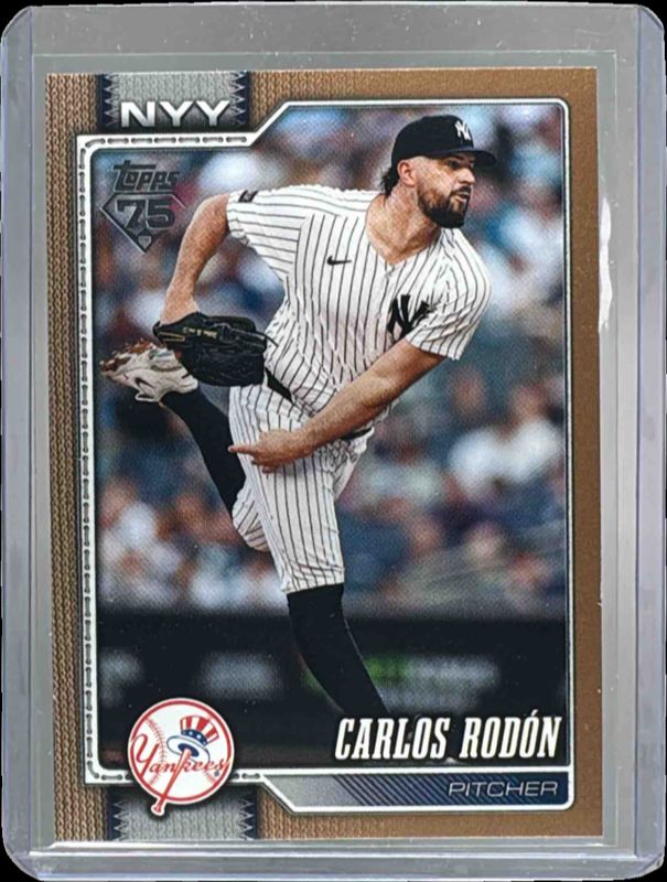 The Carlos Rodon 2026 Topps #82 Gold /2026 card is 1 of 76 Carlos Rodon's card variations in the 2026 Topps set being tracked by Sports Card Investor, including Base, Aqua Holo Foil, Aqua Rainbow Foil, Diamante Foil, and Holo Foil.