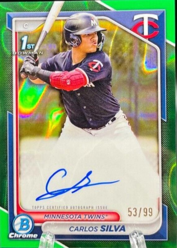 2024 Bowman Carlos Silva Chrome Auto Green Lava 1st Prospect #17/99 Twins