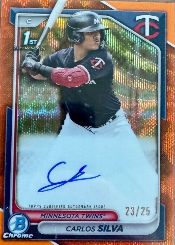 2024 Bowman Carlos Silva Chrome Auto Orange Wave 1st #24/25 Twins