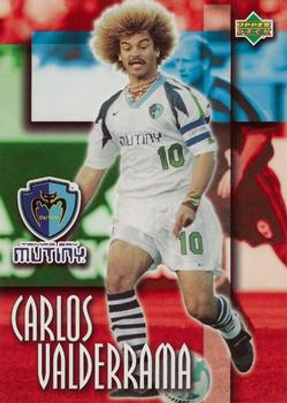 The Carlos Valderrama 1997 Upper Deck MLS Promos card is 1 of 5 Carlos Valderrama's card variations in the 1997 Upper Deck MLS set being tracked by Sports Card Investor, including Base, Gold, Team Captain, and Trophy Winners.