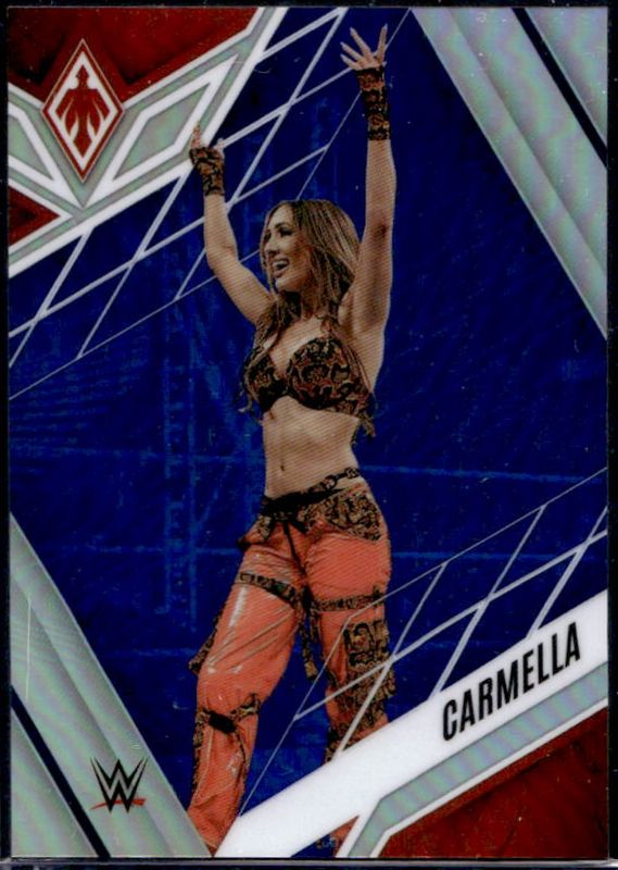 The Carmella 2023 Chronicles WWE #306 Blue /99 card is 1 of 57 Carmella's card variations in the 2023 Chronicles WWE set being tracked by Sports Card Investor, including #293 Base, #96 Base, #306 Base, #111 Base, and #111 Bronze.
