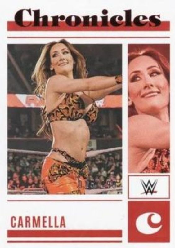 The Carmella 2023 Chronicles WWE #96 Red /199 card is 1 of 57 Carmella's card variations in the 2023 Chronicles WWE set being tracked by Sports Card Investor, including #293 Base, #96 Base, #306 Base, #111 Base, and #111 Bronze.