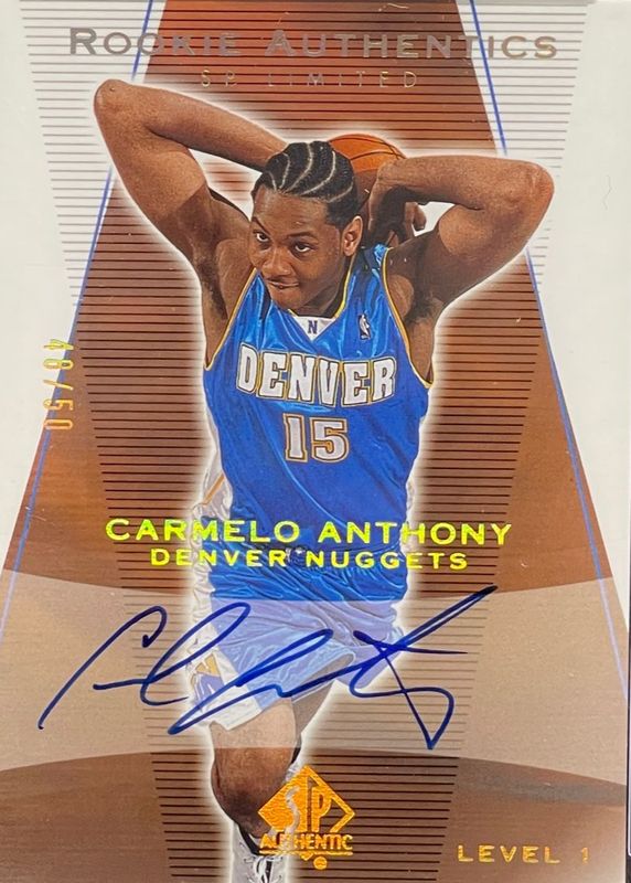 This card is 1 of 3 Carmelo Anthony's card variations in the 2003 SP Authentic set being tracked by Sports Card Investor, including SP Signatures, and Rookie Authentics Autographs /500.