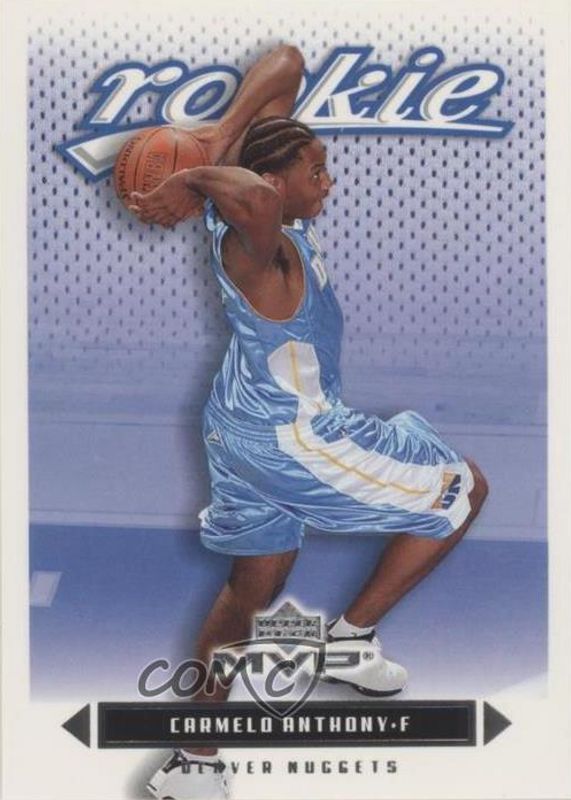 The Carmelo Anthony 2003 Upper Deck MVP #203 Base Rookie card in Raw condition has moved down -$7.18 (-72.3%) in the last 30 days and was last sold for $2.75 .