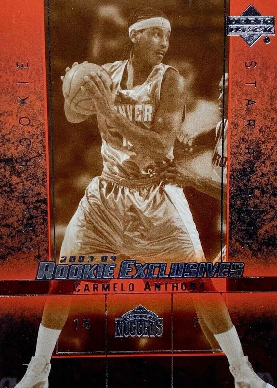 This card is 1 of 3 Carmelo Anthony's card variations in the 2003 Upper Deck Rookie Exclusives set being tracked by Sports Card Investor, including Base, and Superstar Exclusives /100.
