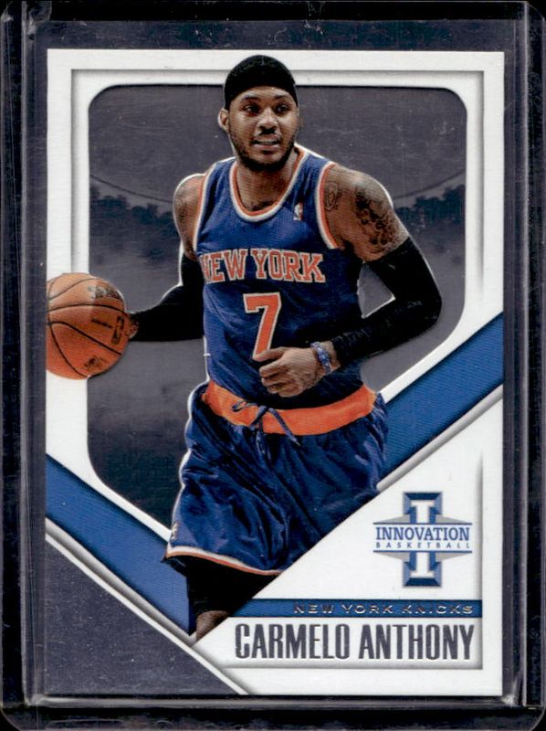The Carmelo Anthony 2013 Innovation #66 Rookie View /199 card is 1 of 14 Carmelo Anthony's card variations in the 2013 Innovation set being tracked by Sports Card Investor, including Juggernauts, Rookie View - Purple, Memorable Memorabilia /299, Stat Line Jerseys /125, and Kaboom! /(SSP).
