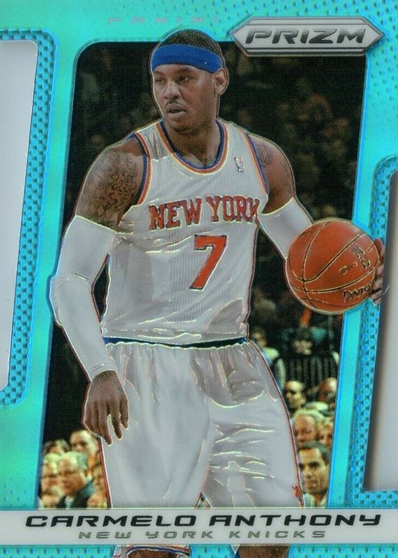 This card is 1 of 26 Carmelo Anthony's card variations in the 2013 Prizm set being tracked by Sports Card Investor, including Base, Green, Red, Red White Blue Mosaic, and Red White Blue Pulsar.