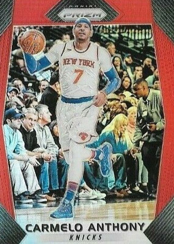 This card is 1 of 47 Carmelo Anthony's card variations in the 2017 Prizm set being tracked by Sports Card Investor, including Base, Fast Break, Green, Hyper, and Red White Blue.