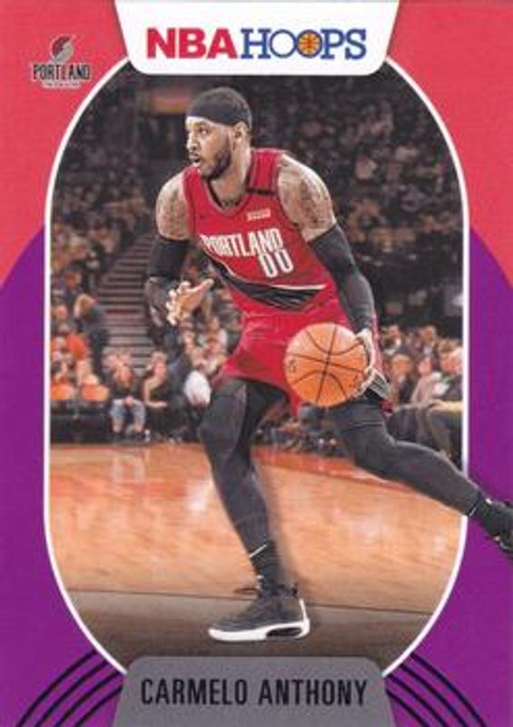 The Carmelo Anthony 2020 Hoops #151 Purple card is 1 of 40 Carmelo Anthony's card variations in the 2020 Hoops set being tracked by Sports Card Investor, including Base, Blue, Hyper Blue, Neon Green, and Purple Explosion.