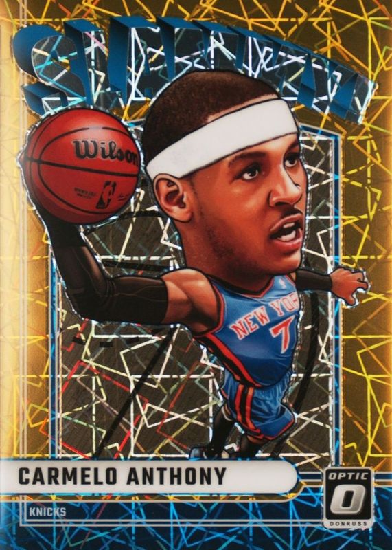 This card is 1 of 3 Carmelo Anthony's card variations in the 2024 Optic set being tracked by Sports Card Investor, including Slammy! /(SSP), and Slammy! - Gold Vinyl /1.