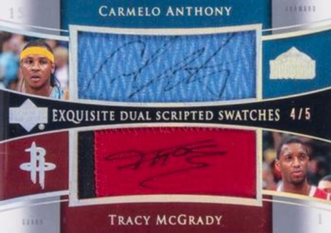 Carmelo Anthony / Tracy McGrady 2004 Upper Deck Exquisite Collection #SS2-AM Dual Scripted Swatches /5 RAW Price Guide
