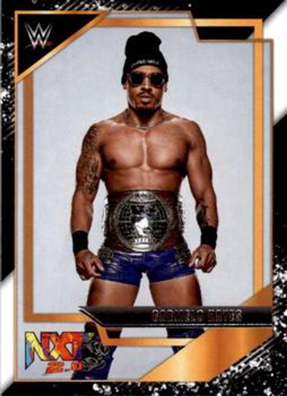The Carmelo Hayes 2022 Panini WWE NXT #21 NXT Gold Rookie card is 1 of 51 Carmelo Hayes' card variations in the 2022 Panini WWE NXT set being tracked by Sports Card Investor, including Base, Green, Silver, Red /199, and Blue /149.