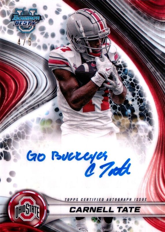 Auctions Ending Soon for Carnell Tate 2024 Bowman Best University #BOA-CT Best of 2024 Autographs - White Geometric Refractor /5 RAW