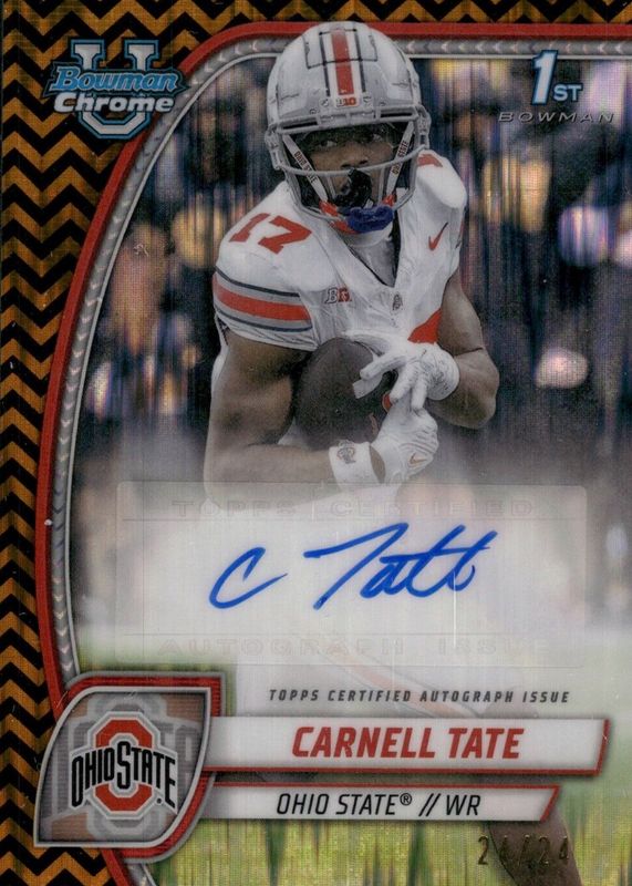 2024 Bowman U Chrome Carnell Tate 1st Black & Gold Stealth Auto /24 Ohio State