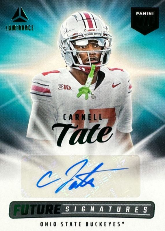 This card is 1 of 4 Carnell Tate's card variations in the 2025 Luminance set being tracked by Sports Card Investor, including Future Signatures NIL, Future Signatures NIL - Purple, and Future Signatures NIL - Red.