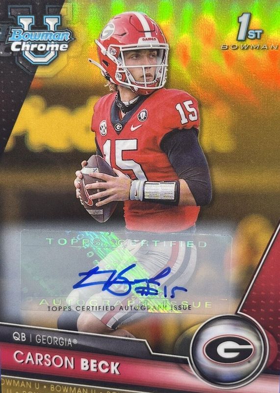 2023 Bowman Chrome University Carson Beck 1st Bowman Gold Refractor Auto 50/50